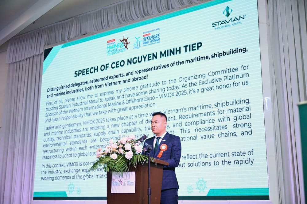 Ông Nguyễn Minh Tiệp – Tổng Giám đốc Stavian Industrial Metal chia sẻ: “Việt Nam đang đứng trước cơ hội quan trọng để nâng cấp năng lực công nghiệp biển và hội nhập sâu hơn vào chuỗi cung ứng quốc tế. Với vai trò Nhà tài trợ Bạch kim độc quyền của VIMOX 2025, Stavian Industrial Metal cam kết đóng góp thiết thực thông qua hệ giải pháp toàn diện cho ngành kim loại công nghiệp, tiên phong cung cấp vật liệu xanh và đồng hành cùng doanh nghiệp trong nâng cao năng lực cạnh tranh. Chúng tôi tin rằng một hệ sinh thái vật liệu kim loại công nghiệp hiện đại, minh bạch và phát triển bền vững sẽ là nền tảng cho tăng trưởng dài hạn của cộng đồng và nền kinh tế.”
